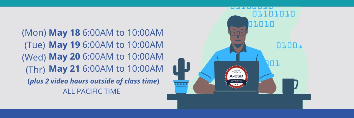 This course satisfies the Advanced Certified Scrum Developer℠(A-CSD℠) certification requirements. In order to receive the A-CSD℠ certification, students must be in attendance all scheduled sessions with active participation and are required to watch the pre-course videos.
