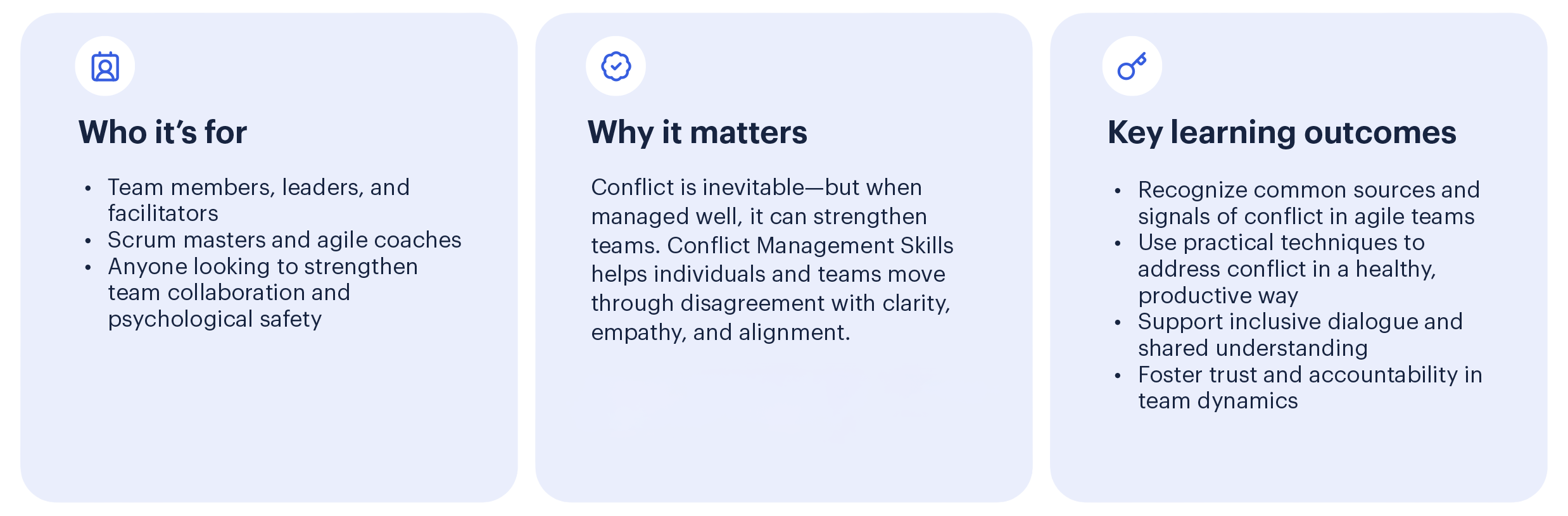 Taught by: Alex SloleyGive your teams the tools to navigate tension, improve communication, and build stronger working relationships through constructive conflict resolution strategies grounded in agile values.