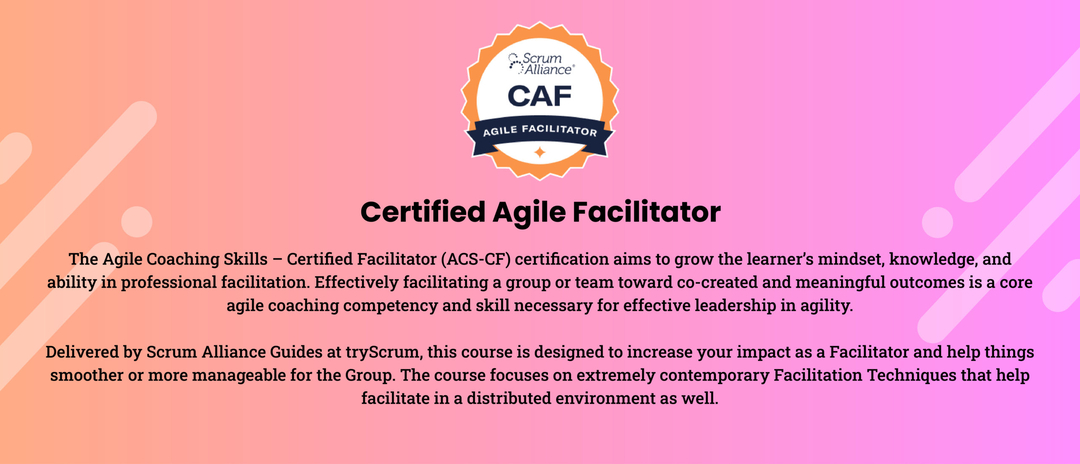 In essence, a CAF is not just a facilitator; they are a change agent, a mentor, and a champion of Agile excellence. They inspire, they empower, and they lead by example.